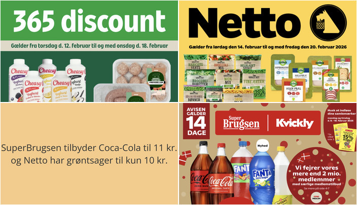 SuperBrugsen har et godt tilbud på Coca-Cola, Fanta eller Schweppes i flasker på 125-150 cl til kun 11 kr. pr. flaske. Tilbuddet gælder fra fredag den 6. februar til og med torsdag den 19. februar 2026.